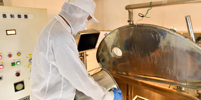 ご家庭で急須を使ってお茶を淹れる要領と同様に専用設備を使用し、お茶本来のもつ旨味がしっかりと残る製法で抽出を行います。